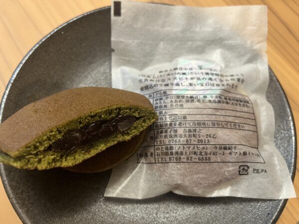 今井商店(ギフト館イマイ)の今井さんが商品開発に関わられたというどら焼きは、大粒の能登大納言小豆がごろっと入っていて生地も柔らかくておいしい。作っているのは大谷にお店を構えておられた吉森菓子舗。