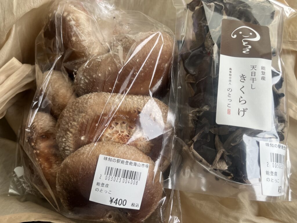 能登町柳田の上野さん(のとっこ)の椎茸も、シーサイド(珠洲市のショッピングセンター/地震により廃業)でよく買っていたのだけど、ここにはありました^^