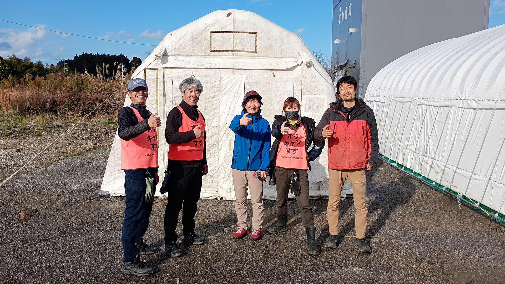 2025年11月末、珠洲市鉢ヶ崎オートキャンプ場で復興支援の一翼を担っていた「ボラキャンすず」の拠点が、若山町上黒丸へ移動しました。