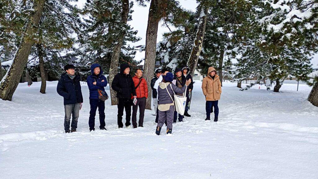 12~2月はツアー参加者が激減するため、このような積雪の中でもお越しいただき、とっても有難く思います。約1時間のご案内でしたが、地震で壊れた橋や揺れと津波で更地となった宝立町商店街、津波が到達し、液状化被害を受けた飯田港をご見学いただきました。
